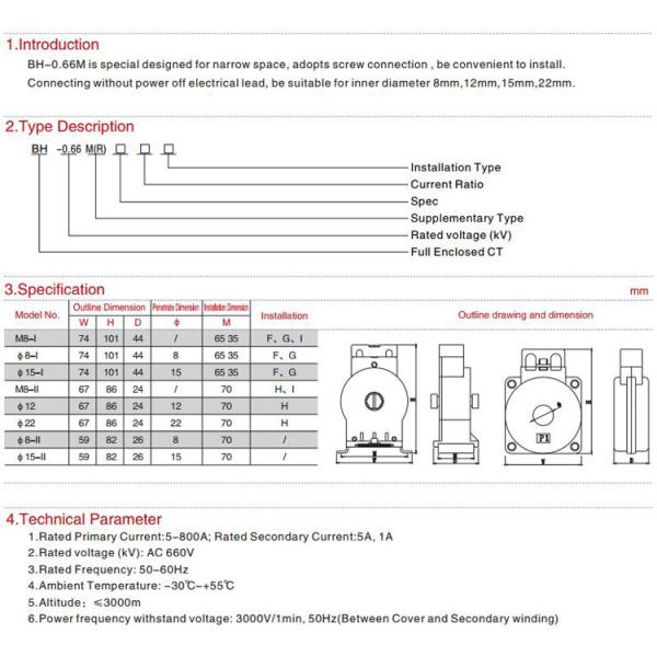 BH-0.66MR series current transformer is designed for its novel magnetic circuit, advanced compensation method, exquisite technical technology, safe and reliable performance, small and beautiful appearance, and generally used for control, protection and measurement.